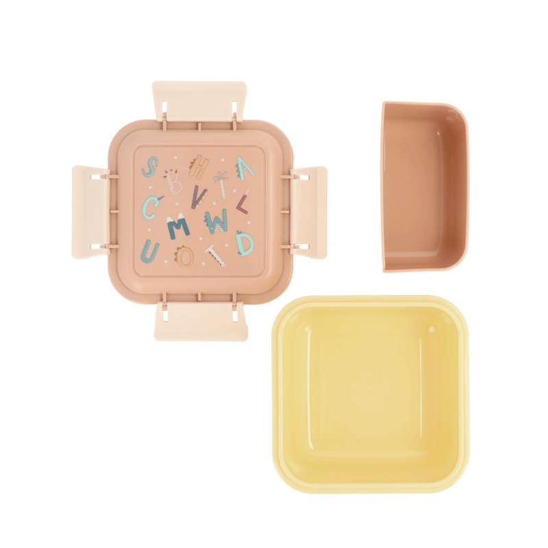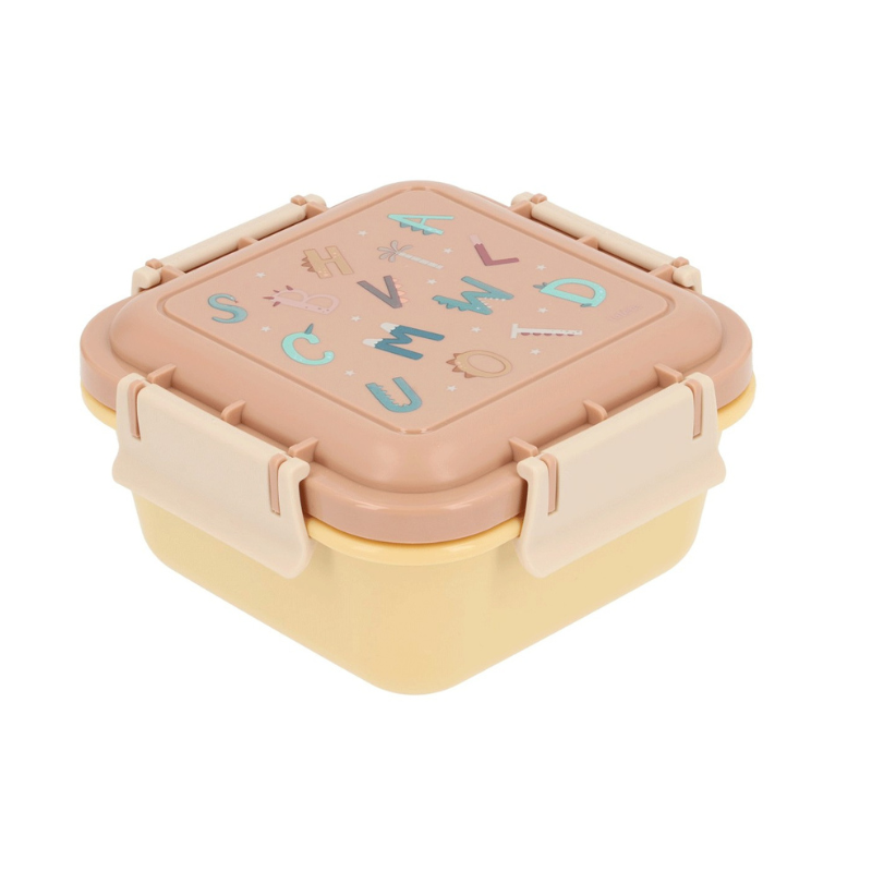 Organiza os lanches com estilo! Lancheira prática, segura e resistente, com fecho hermético, separador interno e design divertido com letras. Ideal para a escola!
