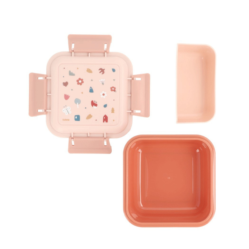 Caixa de frutas Tutete com garfo incluído, ideal para transportar snacks ou fruta cortada dentro da lancheira. Compacta, prática e segura para os mais pequenos!