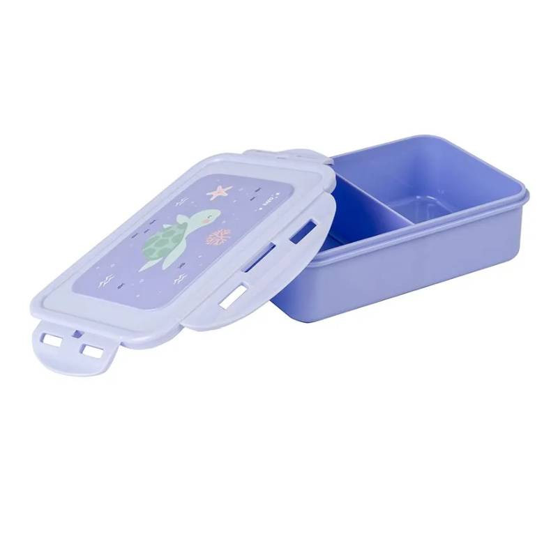 Saro Lancheira L Tartaruga Azul com 4 fechos fáceis de abrir, é perfeita para levar snacks ou refeições. Compatível com micro-ondas (sem tampa) e máquina de lavar loiça.