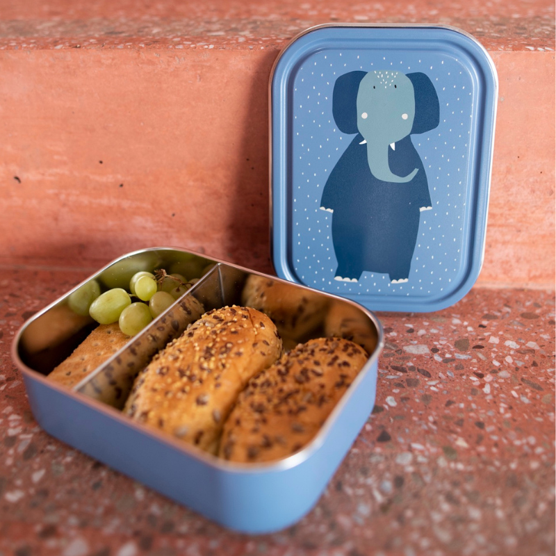 Com design divertido e resistente, a caixa de lanche Mr. Lion é perfeita para crianças a partir dos 3 anos. Feita em aço inoxidável, mantém os alimentos frescos e é fácil de abrir e fechar.