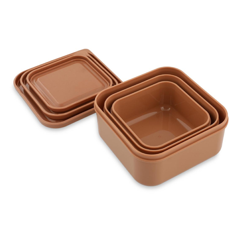 As três caixas têm tamanhos diferentes e encaixam-se perfeitamente umas nas outras, facilitando a organização e a arrumação. As tampas são feitas de material flexível e foram projetadas para que até as mãozinhas mais pequenas consigam abrir com facilidade.