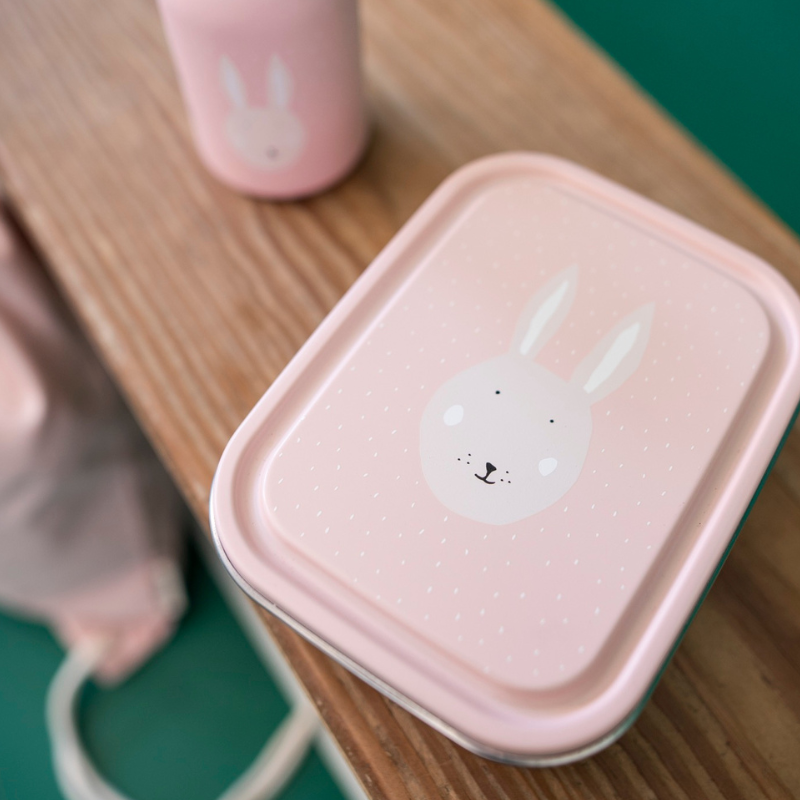 Com design divertido e resistente, a caixa de lanche Mrs. Rabbit é perfeita para crianças a partir dos 3 anos. Feita em aço inoxidável, mantém os alimentos frescos e é fácil de abrir e fechar.