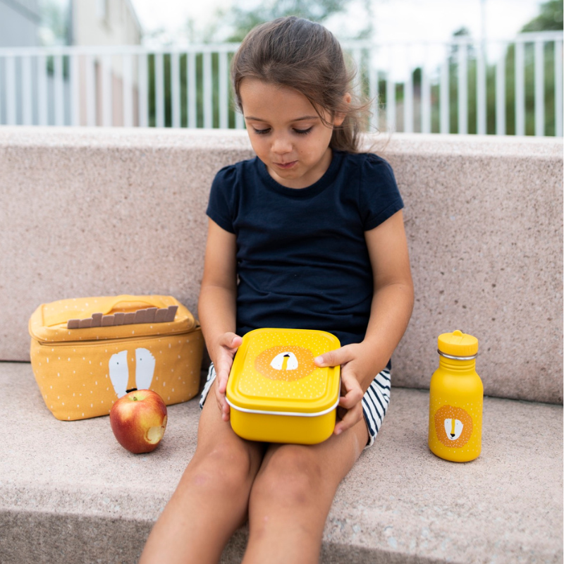 Com design divertido e resistente, a caixa de lanche Mr. Lion é perfeita para crianças a partir dos 3 anos. Feita em aço inoxidável, mantém os alimentos frescos e é fácil de abrir e fechar.