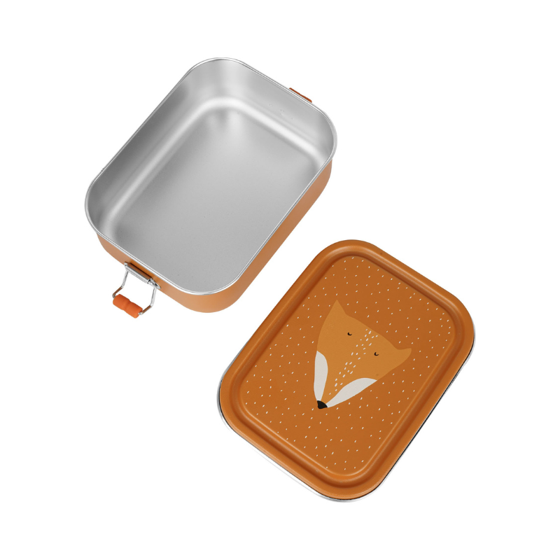 Com design divertido e resistente, a caixa de lanche Mr. Fox é perfeita para crianças a partir dos 3 anos. Feita em aço inoxidável, mantém os alimentos frescos e é fácil de abrir e fechar.