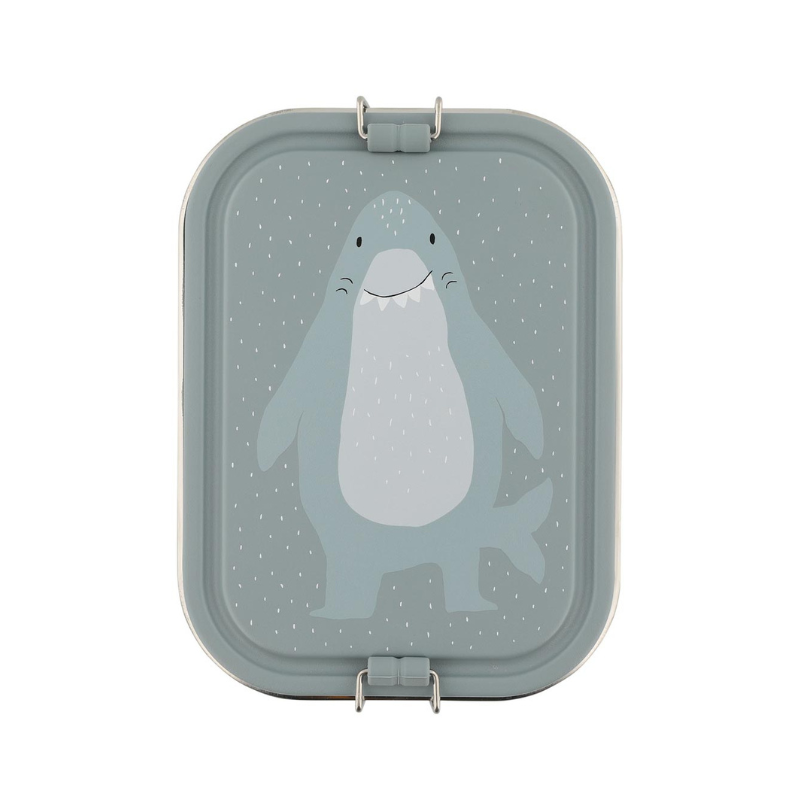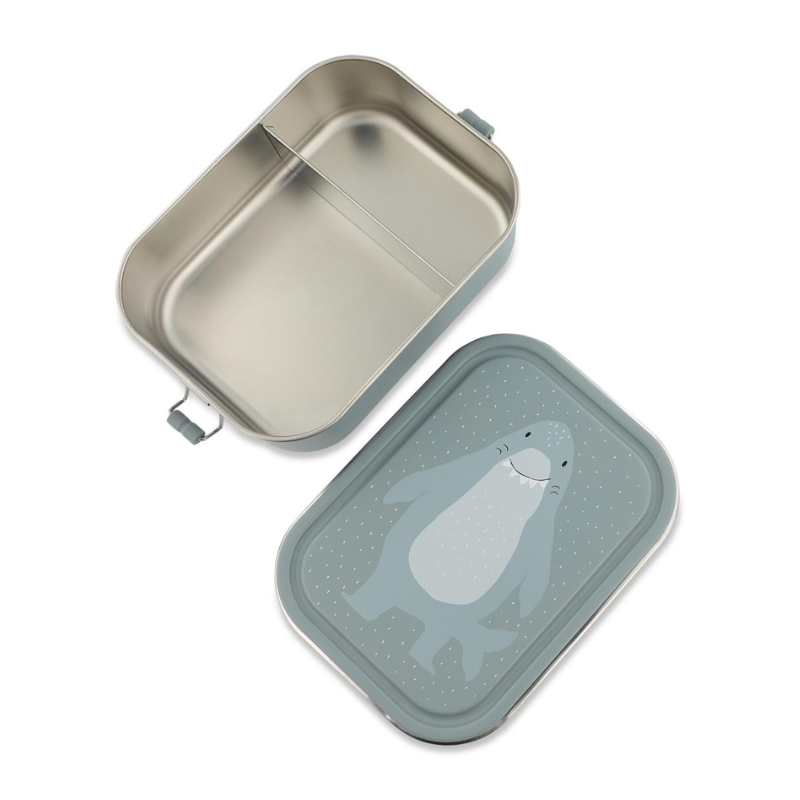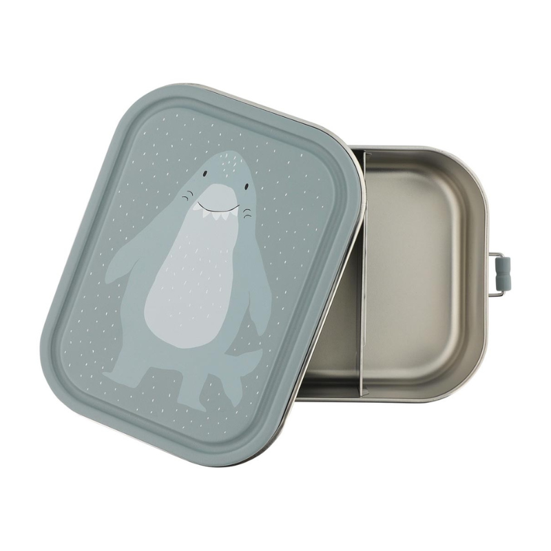 Trixie Lancheira Metálica Grande Mr. Shark é uma caixa de almoço em aço inoxidável, prática e durável. Fácil de abrir e fechar, perfeita para crianças a partir dos 3 anos.