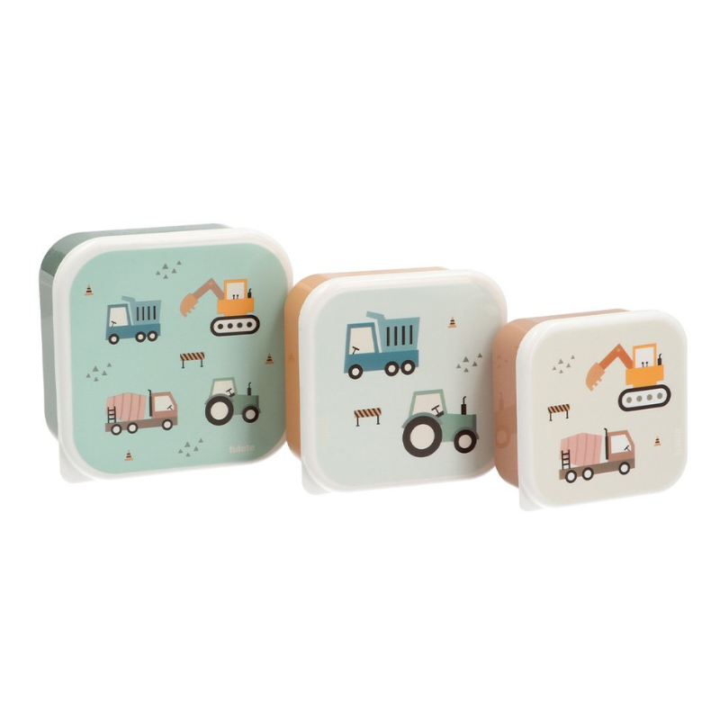 O conjunto de 3 lancheiras “Camiões” da Tutete junta o útil ao encantador: ideais para organizar os alimentos dos mais pequenos, estas caixinhas são leves, resistentes e fáceis de transportar.