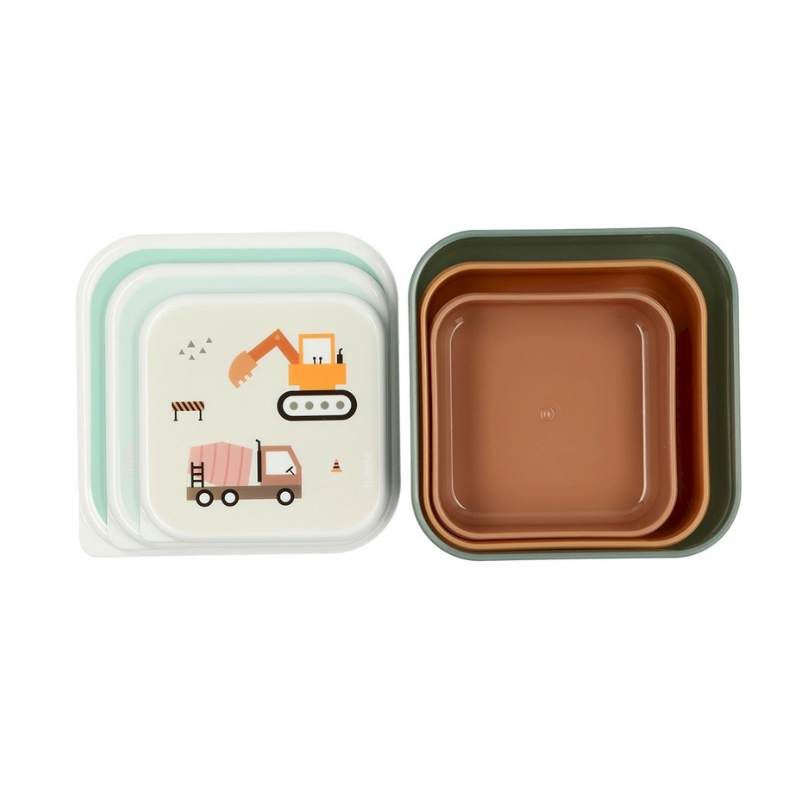 Inspirado num mundo de aventuras e personagens divertidas, o design exclusivo dos camiões torna cada refeição um momento especial. Graças aos 3 tamanhos diferentes, podem ser empilhadas e guardadas facilmente dentro da mochila escolar ou da lancheira térmica.