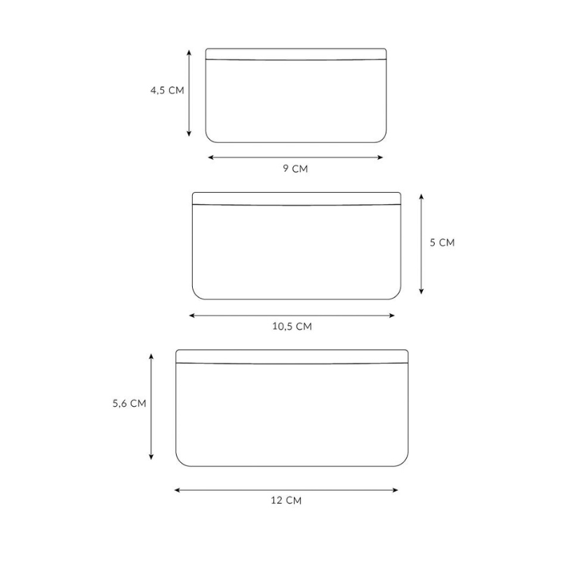Pequeno: 9 cm x 9 cm x 4,5 cm