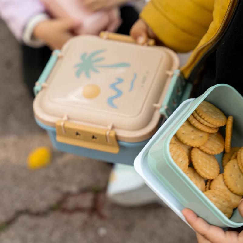A Lancheira Click&Go da Saro foi feita para os lanches da escola, os snacks do parque e os pequenos-almoços fora de casa. Quatro fechos de encaixe fáceis de usar, um design que não deixa escapar nada, e um recipiente interior para separar os alimentos sem que se misturem.