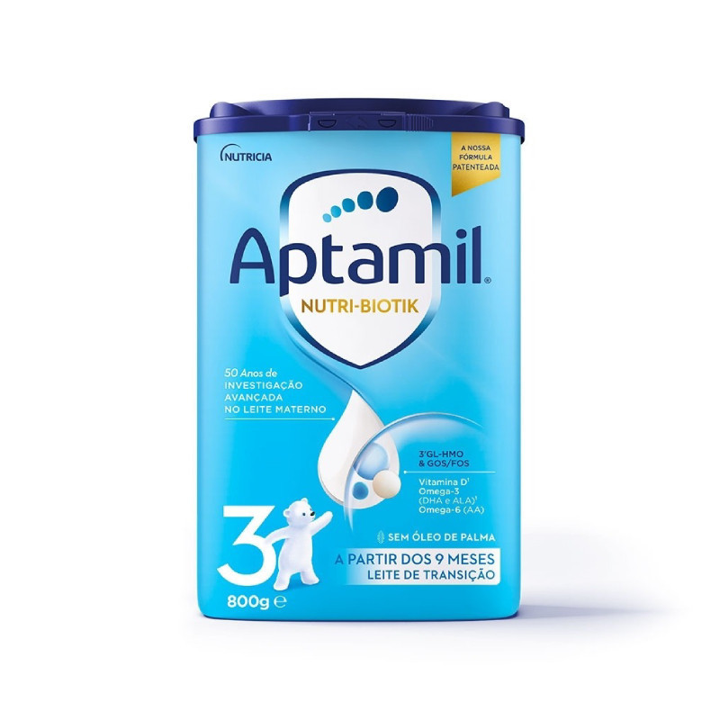 Aptamil Nutri-Biotik 3 é um leite de transição, indicado para bebés a partir dos 9 meses de vida até ao final da lactância, como parte de uma dieta diversificada. E não deve ser usado com substituto do leite materno até então.