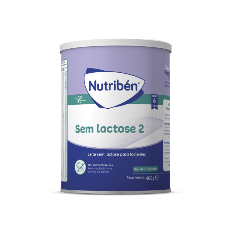 Nutribén Sem Lactose 2 Leite +6M 400g fórmula sem lactose para intolerância à lactose primária ou secundária à lactose a partir dos 6 meses.