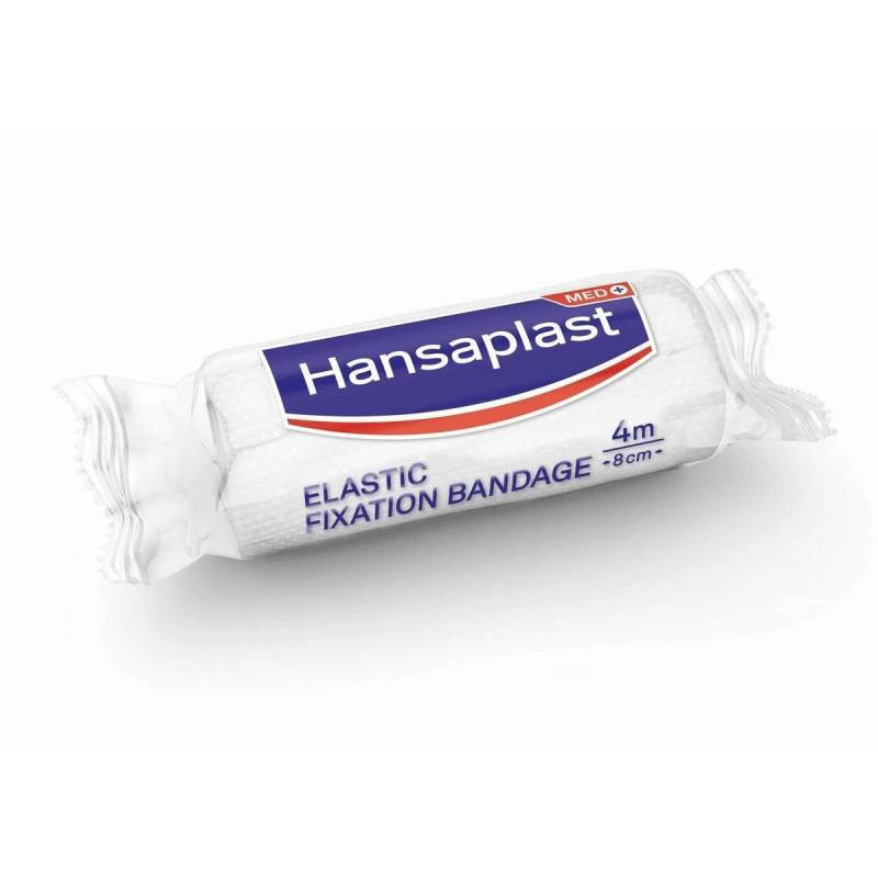Hansaplast Ligadura Elástica 4mx8cm macia e elástica para fixar curativos e compressas.