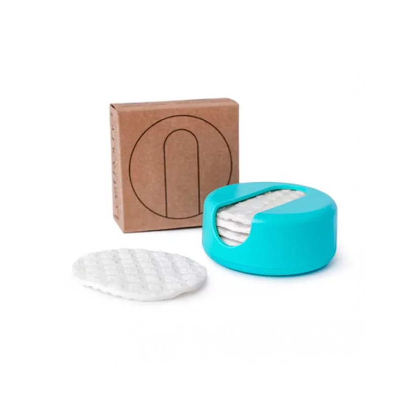 LastRound Discos Desmaquilhantes Reutilizáveis Turquesa é uma caixa composta por 7 discos desmaquilhantes reutilizáveis, concebidos para a limpeza do rosto.