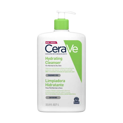 Cerave Creme de Limpeza Hidratante 1L limpa de forma suave, remove impurezas e oleosidade, sem fazer espuma e sem deixar uma sensação de repuxamento e secura, ao mesmo tempo que hidrata e preserva a pele normal a seca.