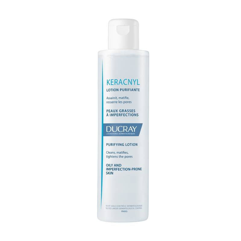 Ducray Keracnyl Loção Purificante limpeza facial matificante diário, desenvolvido para pele oleosa com tendência a imperfeições.