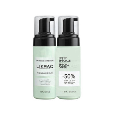 Lierac Espuma de Limpeza Duo 50% Desc. 2ªUnidade é um pack promocional composto por duas embalagens de 150ml. Lierac Espuma de Limpeza é um cuidado desmaquilhante que purifica e acalma suavemente a pele, adequado para todos os tipos de pele, mesmo as mais sensíveis.