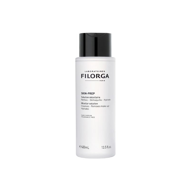 Filorga Skin-Prep Água Micelar 400ml limpa, desmaquilha e hidrata a pele.