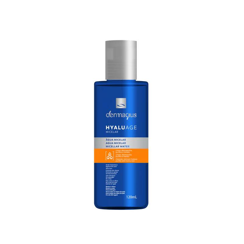 Dermagius Hyaluage Água Micelar 120ml remove suavemente a maquilhagem e as impurezas da pele.