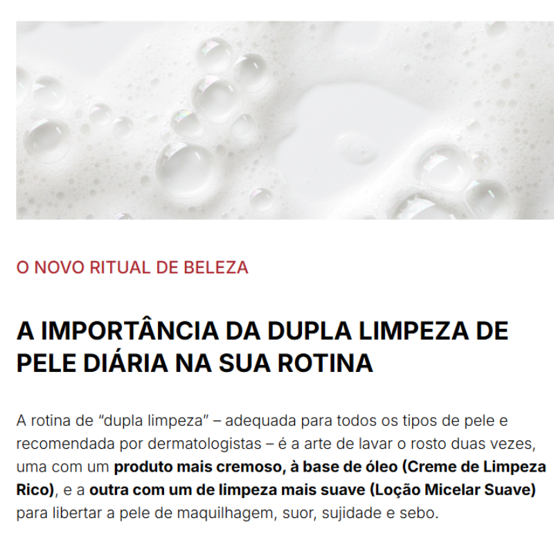 • Para quem procura uma rotina de limpeza que trata, hidrata e protege, em vez de simplesmente limpar.