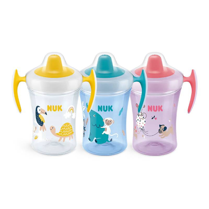 Nuk Trainer Cup +6M 230ml ajuda na transição suave para o primeiro copo, com um bocal particularmente macio que é suave para as gengivas e o palato.