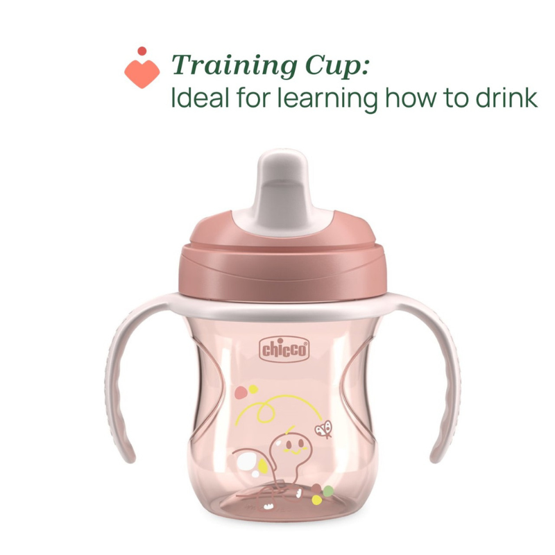 Chicco Copo Transição Azul 4M+ com pegas removíveis, fácil de pegar e ideal para bebés a partir dos 4 meses, para a transição gradual do seio ou biberão para o primeiro copo.