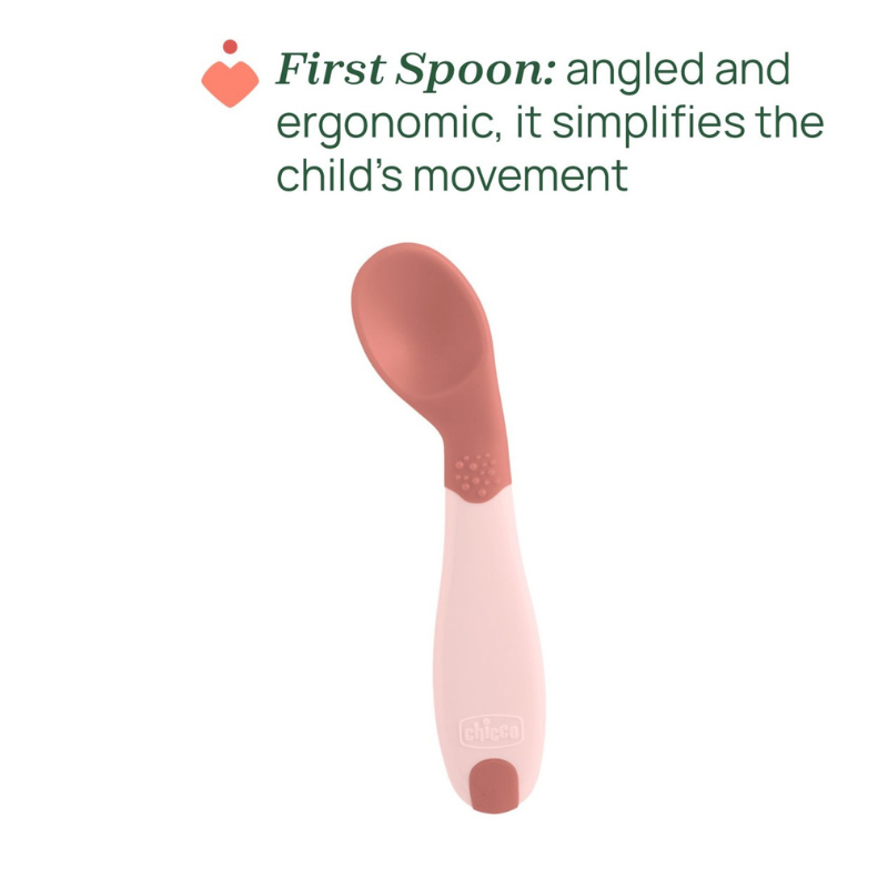 Colher inclinada: desenhada para garantir suavidade nas gengivas sensíveis do bebé, com formato pequeno e ergonómico que facilita a utilização pelo próprio bebé.