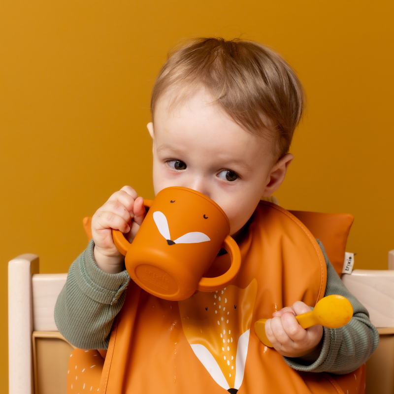 O Copo Aprendizagem Mr. Fox foi projetado para ajudar o teu filho a beber de forma independente. As grandes asas facilitam o uso, oferecendo prática para segurar e inclinar o copo como se fosse um copo aberto. Este copo permite que o teu filho beba sem derramar, tornando-o especialmente útil durante passeios e atividades fora de casa.