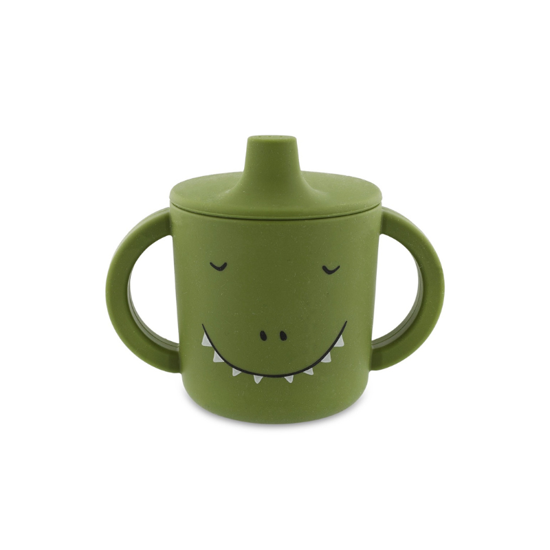 O Copo Aprendizagem Mr. Dino foi projetado para ajudar o teu filho a beber de forma independente. As grandes asas facilitam o uso, oferecendo prática para segurar e inclinar o copo como se fosse um copo aberto. Este copo permite que o teu filho beba sem derramar, tornando-o especialmente útil durante passeios e atividades fora de casa.