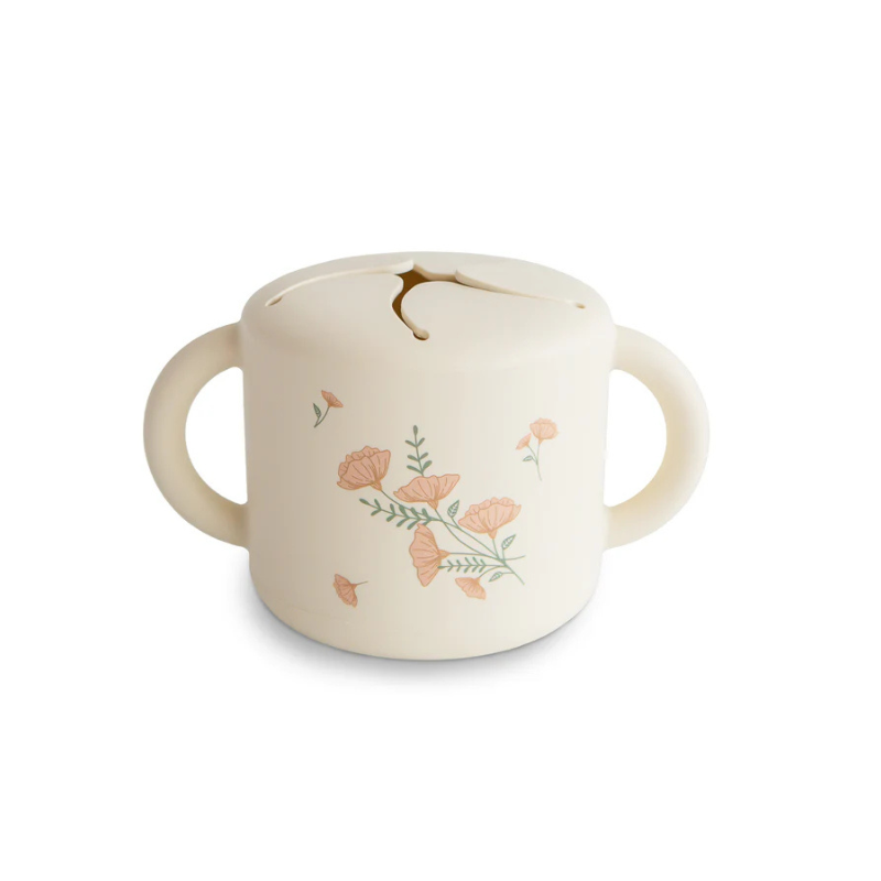O Copo para Snacks da Mushie é a solução perfeita para pais que querem oferecer snacks aos seus filhos sem terem de lidar com o rasto de migalhas pela casa, carro ou carrinho. Com um design inteligente e um tema floral adorável, este copo torna os lanches mais práticos e divertidos.
