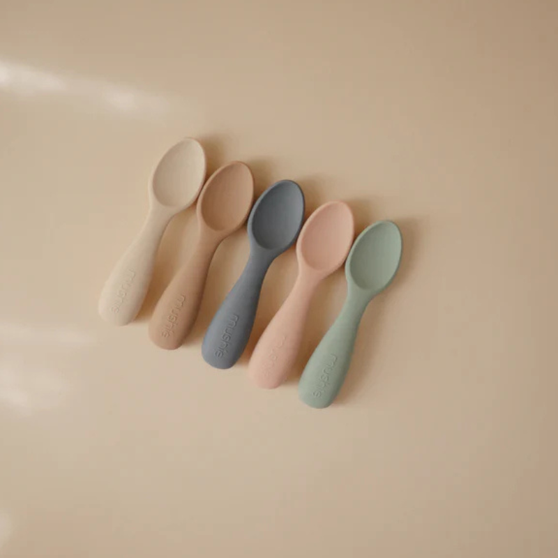 Ajuda o teu pequeno a dar os primeiros passos na alimentação independente com as Colheres Bebé Mushie! Este pack de 2 colheres em silicone alimentar 100% seguro foi pensado para mãozinhas curiosas que estão a aprender a comer sozinhas. Com um cabo fácil de agarrar e a superfície suave, são gentis nas gengivas sensíveis e nos primeiros dentinhos do teu bebé.