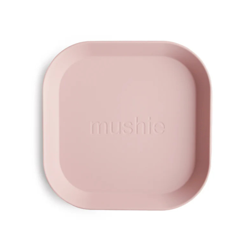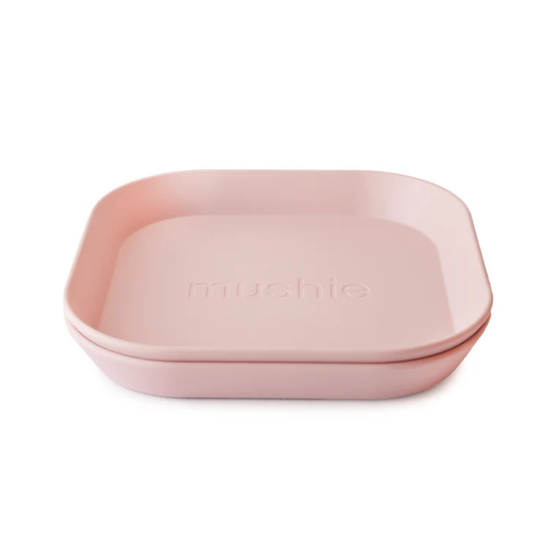 2 pratos quadrados, tons suaves. Sem BPA, para micro-ondas e máquina de lavar louça. A simplicidade nórdica para as refeições do teu bebé, a partir dos 6 meses.