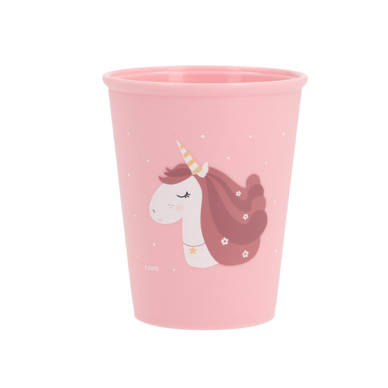 O nosso copo preferido! É simples, prático e não parte. Muitas creches, infantários e escolas pedem um copo sem pegas, e aqui está a solução perfeita! Com o adorável estampado de Unicórnio, é fácil de segurar, seguro e lavável na máquina.