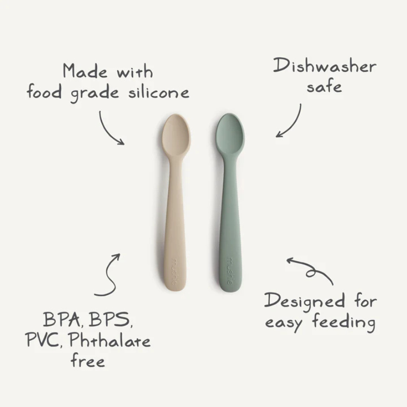As Colheres de Alimentação Mushie foram feitas para a hora das papas, dos purés e das primeiras descobertas. O silicone é macio, flexível e seguro. A ponta é suave para as gengivas – mesmo quando os dentes começam a aparecer. E o tamanho é perfeito para a boca pequena.