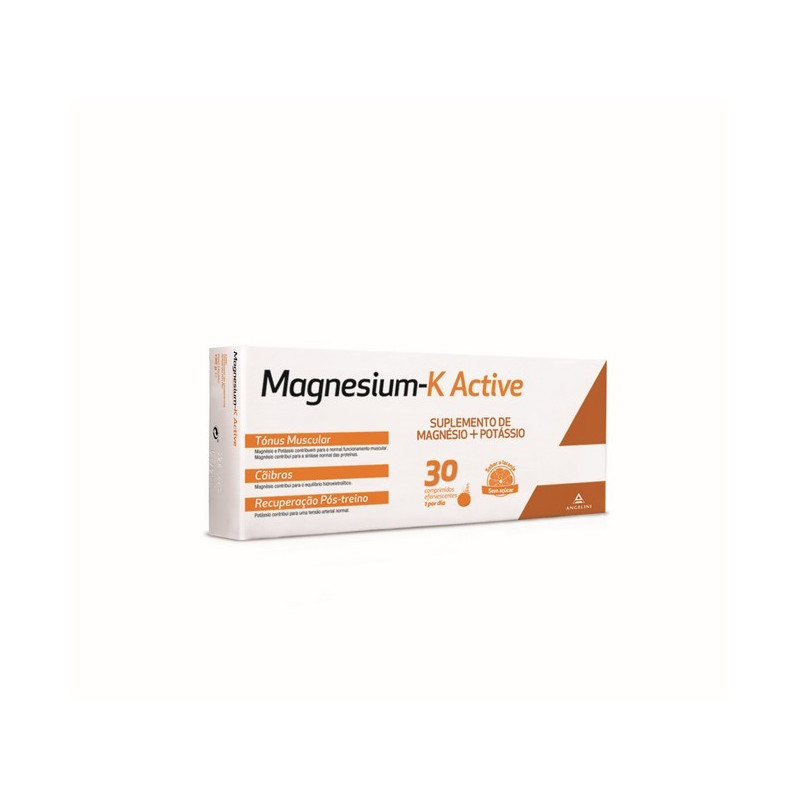 Magnesium-K Active Comprimidos Efervescentes é um suplemento alimentar com sabor a laranja, indicado para pessoas que praticam desporto de forma intensa e com maior desgaste. A fórmula contém Magnésio, contribui para o normal funcionamento muscular e síntese normal das proteínas; para uma tensão arterial normal e normal funcionamento do sistema nervoso. Adequado para quem pretende uma recuperação pós-treino mais rápida. Sem açúcar.