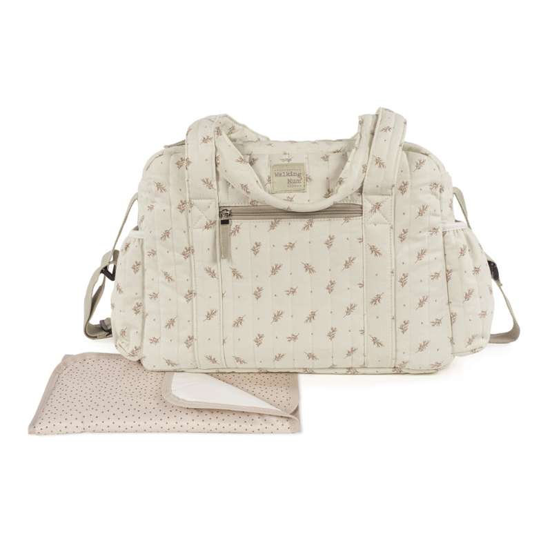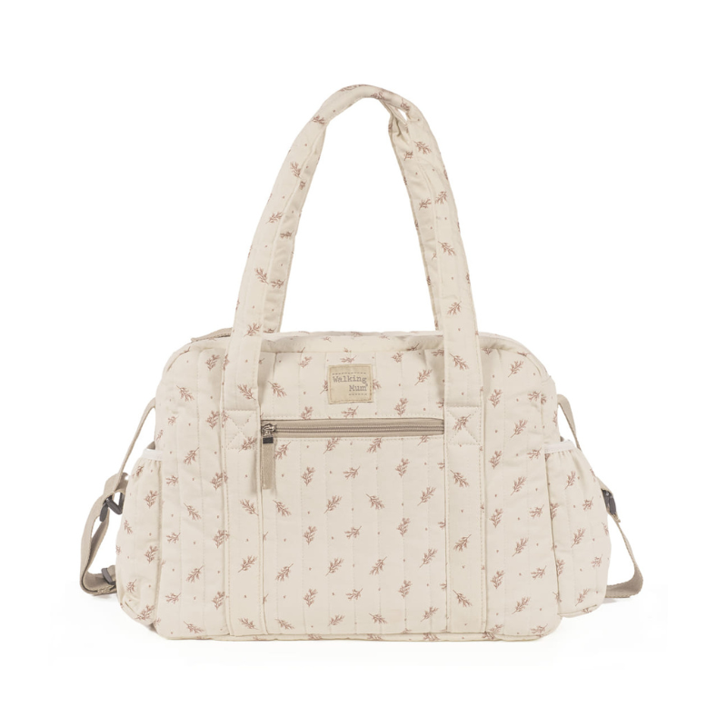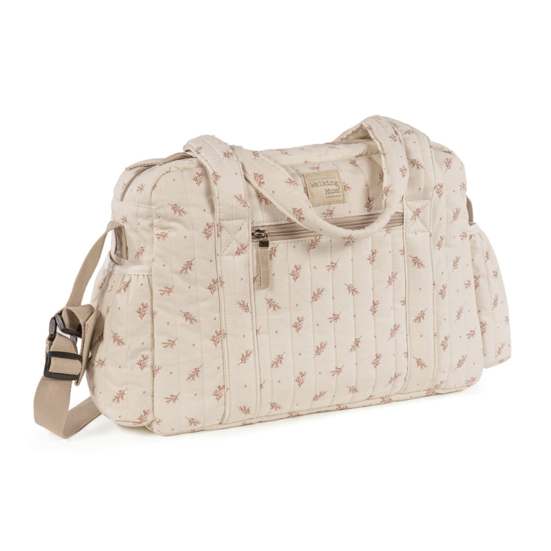 A mala de maternidade Mimosa Rosa da Walking Mum é perfeita para acompanhar o dia a dia com o bebé, combinando grande capacidade, organização inteligente e um design floral delicado.