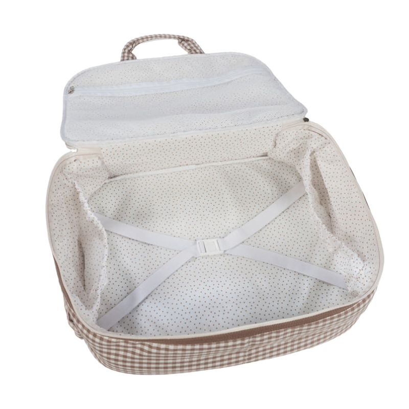 O padrão vichy em tom moka combina estilo e funcionalidade para acompanhares este momento com tudo a condizer.