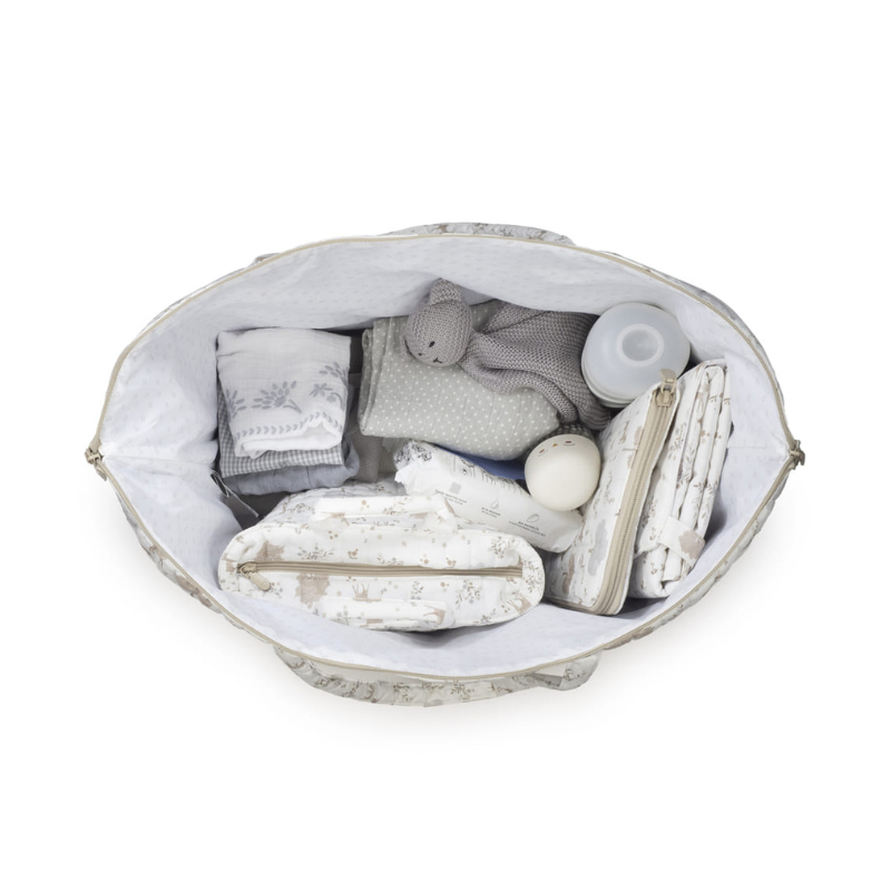 Espaço, estilo e natureza. A mala de maternidade que cabe tudo e combina contigo.