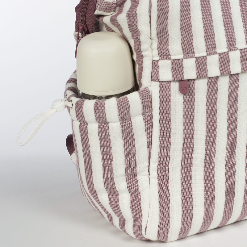 Mochila maternidade padrão riscas, multifunção com grande capacidade, vários bolsos e muda fraldas incluído. Prática, moderna e ideal para o dia a dia. Dimensões: 37 x 28 x 12 cm.