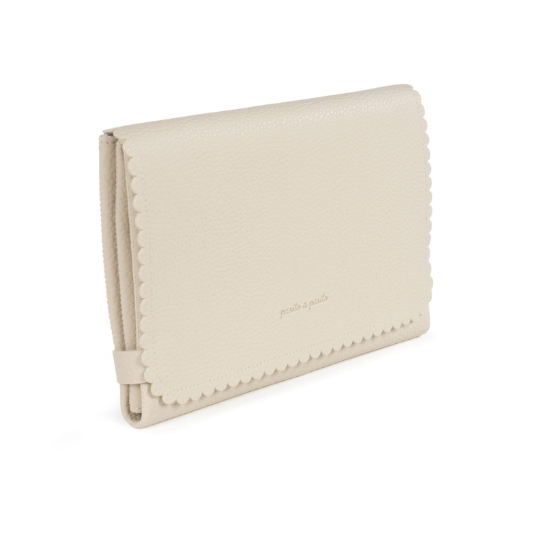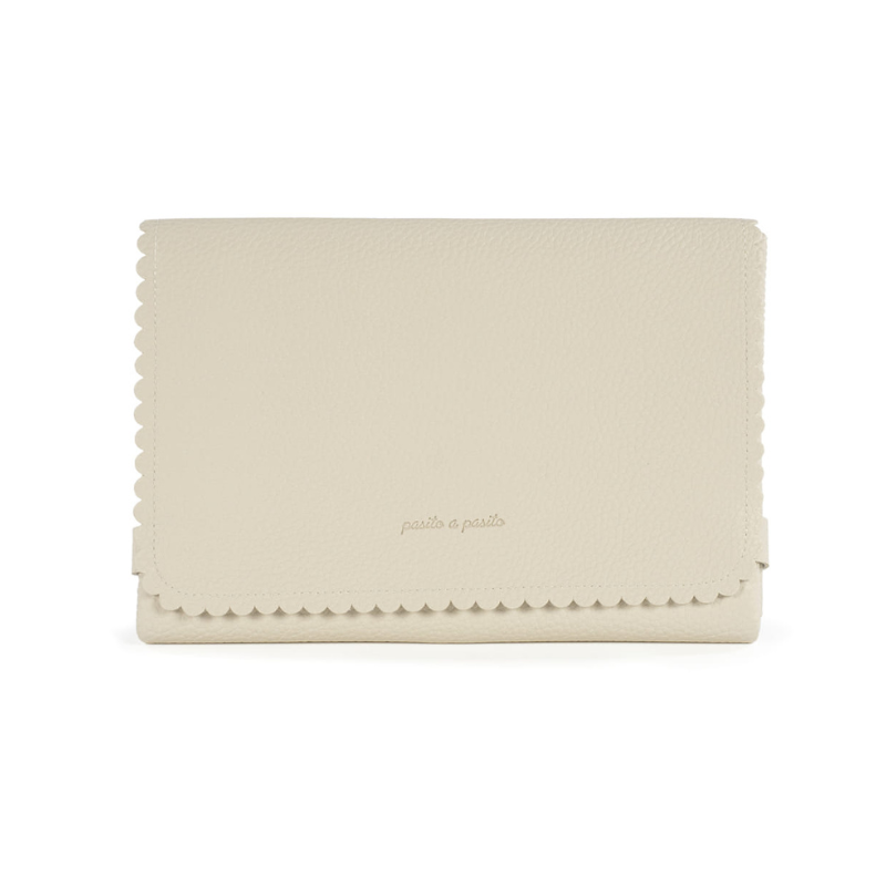 Muda fraldas Pasito a Pasito Icon em eco-pele cream. Dobrável, portátil e impermeável. Forro interior acolchoado, fácil de limpar. Medidas abertas: 52x71 cm. Fecho em cintas de agarre. Lavável à máquina. Livre de substâncias nocivas.