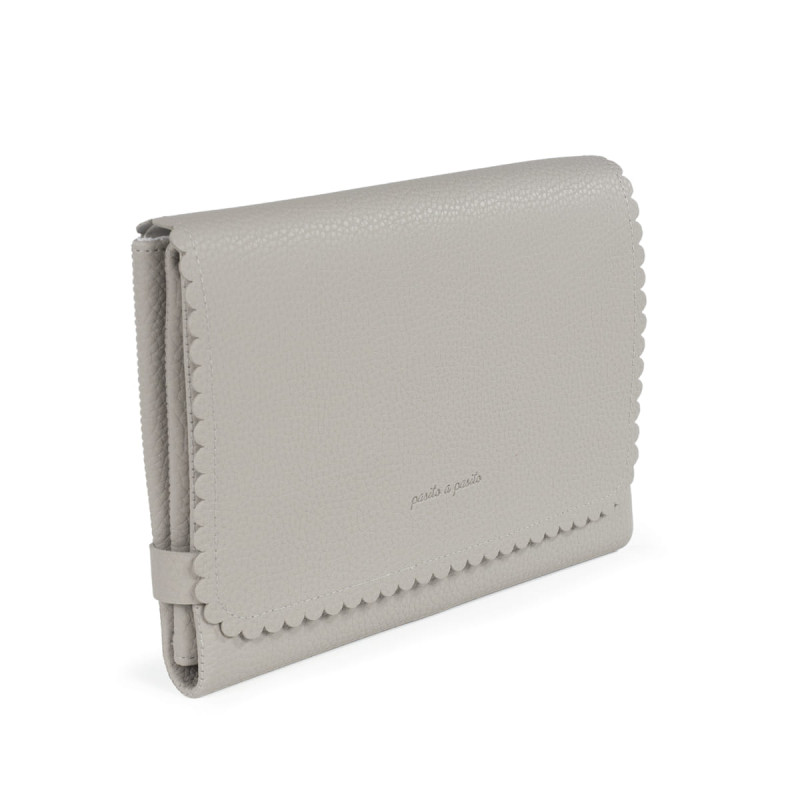 Muda fraldas Pasito a Pasito Icon em eco-pele cream. Dobrável, portátil e impermeável. Forro interior acolchoado, fácil de limpar. Medidas abertas: 52x71 cm. Fecho em cintas de agarre. Lavável à máquina. Livre de substâncias nocivas.