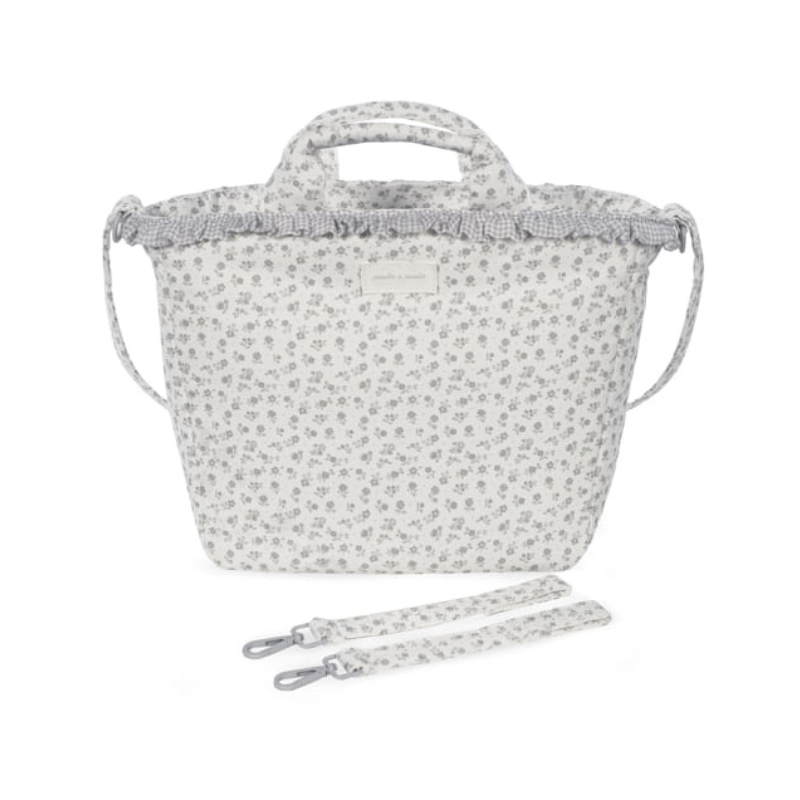 A Mala Maternidade Little Bloom Flowers Gray da Pasito a Pasito combina elegância e funcionalidade para acompanhar todos os momentos com o seu bebé.