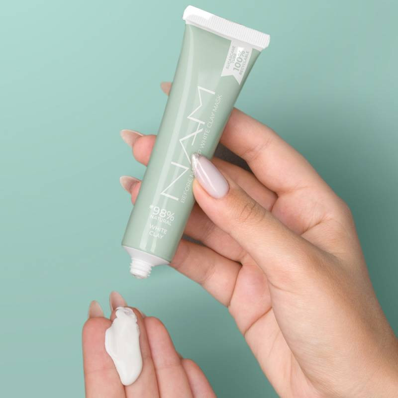 NAM Cosmetics Before Make Up white Clay Mask 35ml é uma máscara facial que prepara a pele para a maquilhagem.