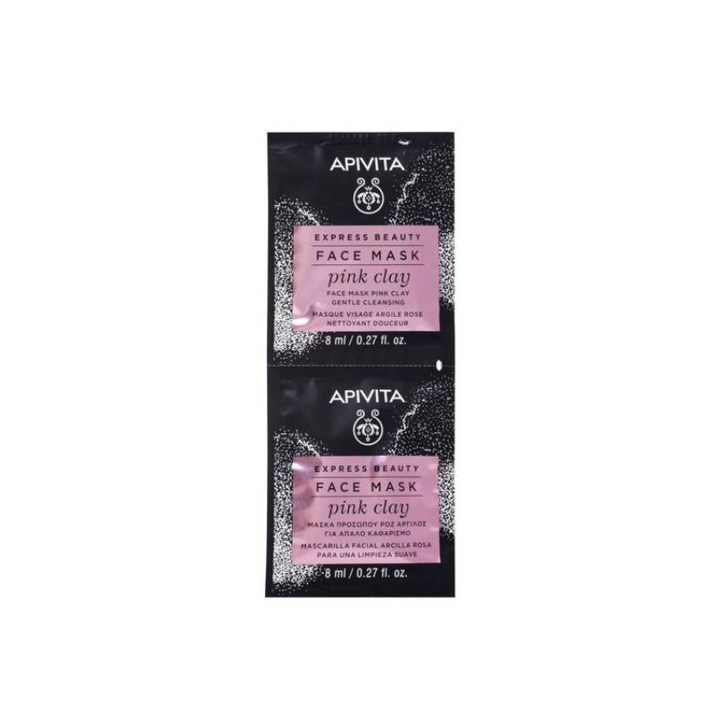 Apivita Máscara Limpeza Suave Argila Rosa 2x8ml é uma máscara para a pele normal, seca e sensível, ilumina a tez e reduz os poros visíveis graças ao extrato de alcachofra e ao ácido azelaico.