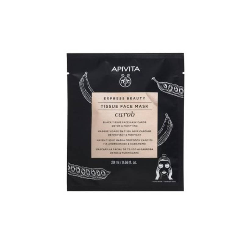Apivita Máscara de Tecido Preta Detox & Purificante 20ml é um cuidado que purifica a pele. ao absorver o excesso de sebo e a poluição, e diminui os poros, com carvão ativado derivado do carvalho.