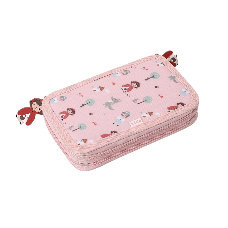 Estojo infantil Tutete Capuchinho Vermelho, com ilustrações encantadoras, ideal para guardar lápis, canetas e acessórios escolares. Fabricado em plástico reciclado, leve, resistente e ecológico.