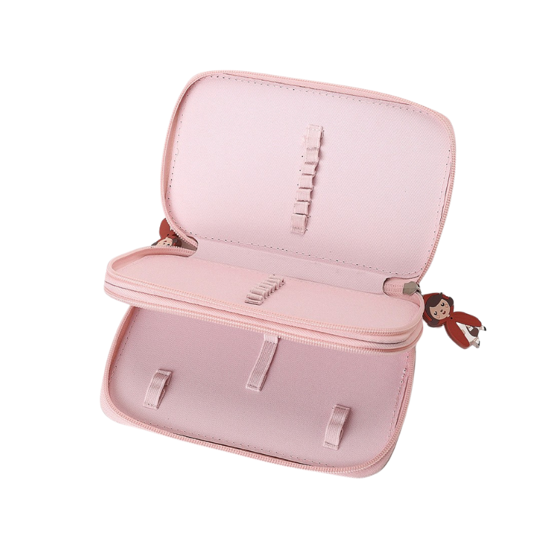 Com dois compartimentos separados por fechos de correr, permite guardar e separar facilmente lápis, canetas, marcadores, borrachas e todos os essenciais escolares. O material exterior impermeável protege contra derrames e humidade, enquanto as alças em silicone facilitam o manuseamento por mãos pequenas.