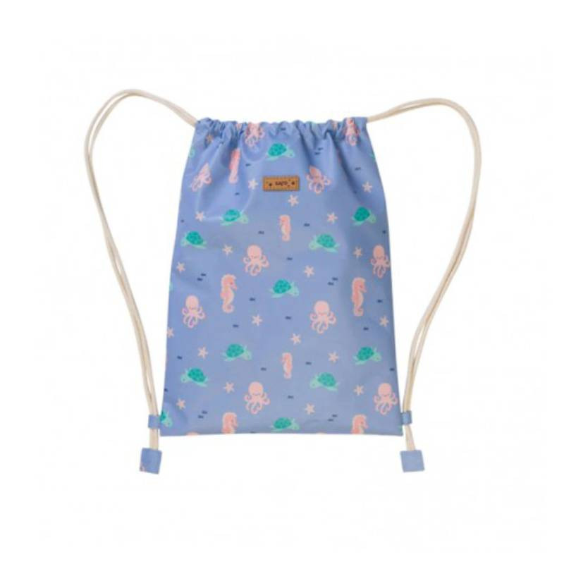 Saro Mochila Saco Ocean Life é uma mochila em formato saco impermeável, perfeita para crianças a partir dos 3 anos.