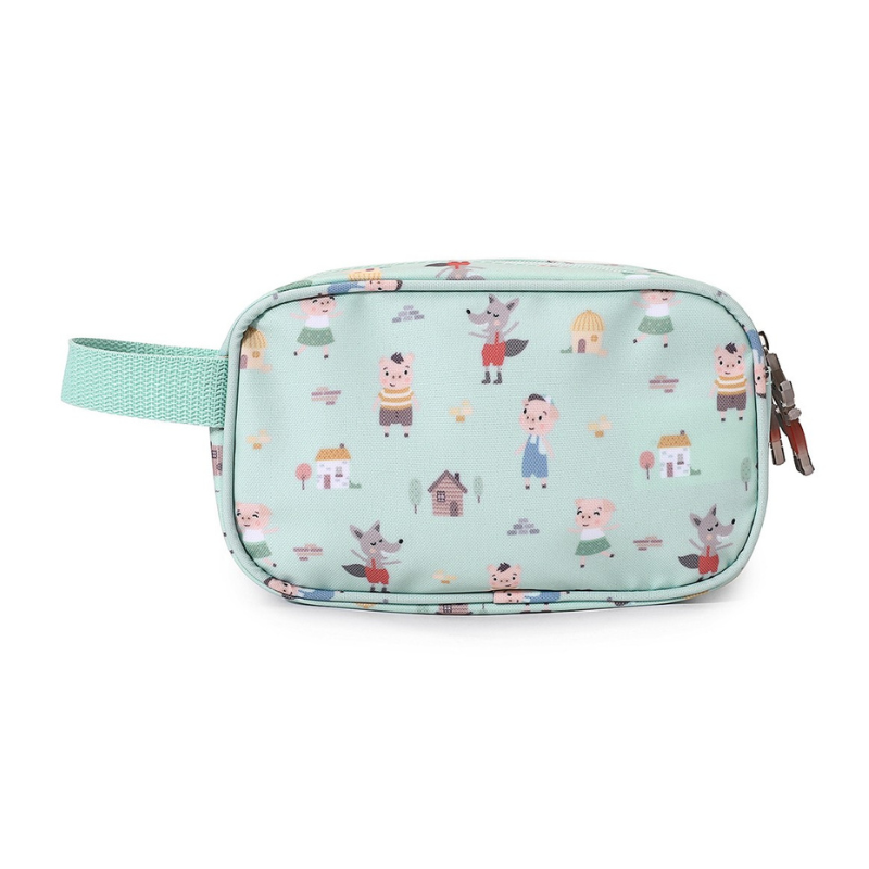 Tutete Necessaire Infantil Três Porquinhos é prático, espaçoso e ideal para transportar produtos de higiene da criança com organização e estilo, na escola, em casa ou em viagem.