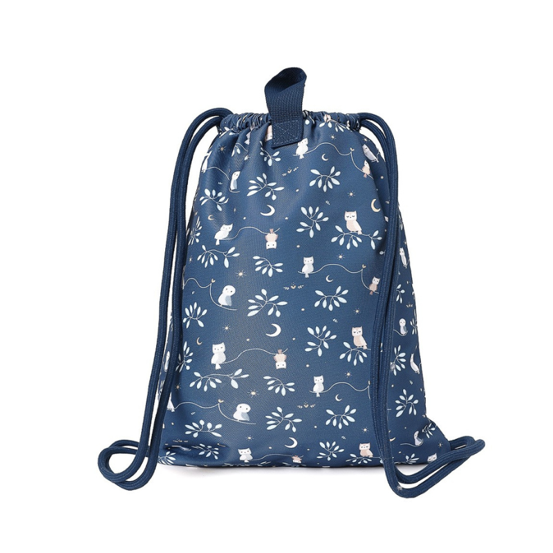 Mochila saco leve em tecido com estampado de letras. Ideal para a creche ou jardim de infância - prática, lavável e fácil de identificar.