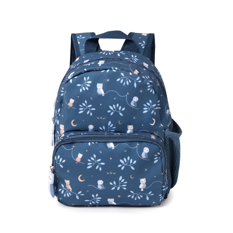 Mochila leve e ecológica feita de plástico reciclado, perfeita para crianças entre 1 e 3 anos. Confortável, prática e cheia de estilo para as primeiras aventuras do dia a dia.